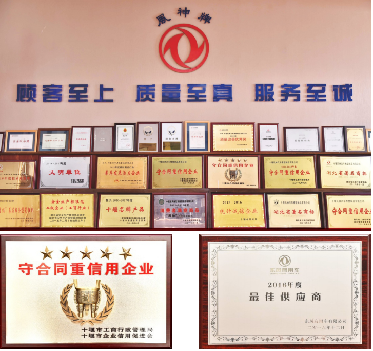 01多届被评为为:湖北省著名商标,十堰市知名商标。连续 30年被十堰市人民政府授予“守合同重信用”连续20年被认定 为:湖北省守合同重信用企业。连续多年被东风商用车公司、 东风汽车股份有限公司、等主要顾客授予:最佳供应商优秀供应商