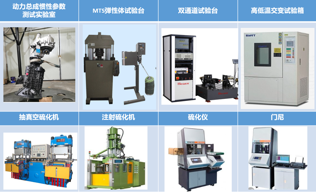 公司具备雄厚的生产与检测实力,现已拥有各类主要生产设备逾200台、 先进检测设备20余台,均达国内领先水平。公司汇聚专业技术力量,现 有工程技术人员43人,含高级工程师5人,并设立技术研发中心,可精 准响应客户需求,提供定制化产品开发服务。在质量管控体系方面,企 业构建了覆盖全产业链的精密检测网络:通过动力总成惯性参数实验室 实现动态特性精准分析,依托MTS弹性体实 验台完成材料性能精细化评 估,采用双通道测试系统实施多维度质量监控;配备的高低温交变试验 箱可模拟极端工况验证产品稳定性,而抽真空硫化机与注射硫化机的协 同运作则确保橡胶制品工艺精度。此外,公司运用硫化仪、门尼机实时 监测生产参数,结合扭力/拉力测试机开展力学性能全面评估,并通过 耐热与霜冻专项试验严格把控材料耐受极限。该体系化的质量保障机 制贯穿原材料筛选至成品出厂全流程,充分彰显了企业对卓越品质的 执着追求与技术实力,为持续输出高标准橡塑零部件提供可靠支撑。